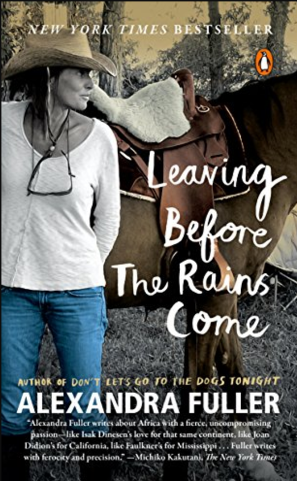 Alexandra Fuller learned from her parents how to live. She has lived enough to write four memoirs and that’s only up to this point. Leaving Before the Rains Come is her fourth. In it she focuses on her marriage and its dissolution, a story that cannot be told completely without reference to her unconventional upbringing and her complicated family. She dissects her family history, uncovering the strengths and weaknesses of all her forebears, especially the women, and wonders how much of what made each of them tick, for better or worse, has been genetically encoded into her history.