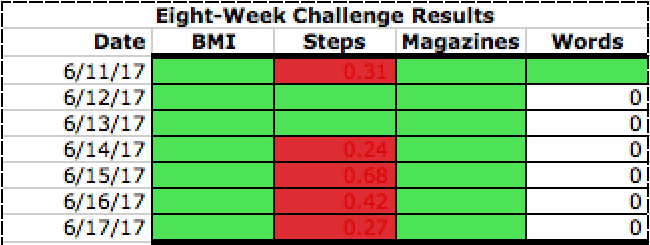 Week Two: not much difference from Week One. Again, a reminder of my goals: