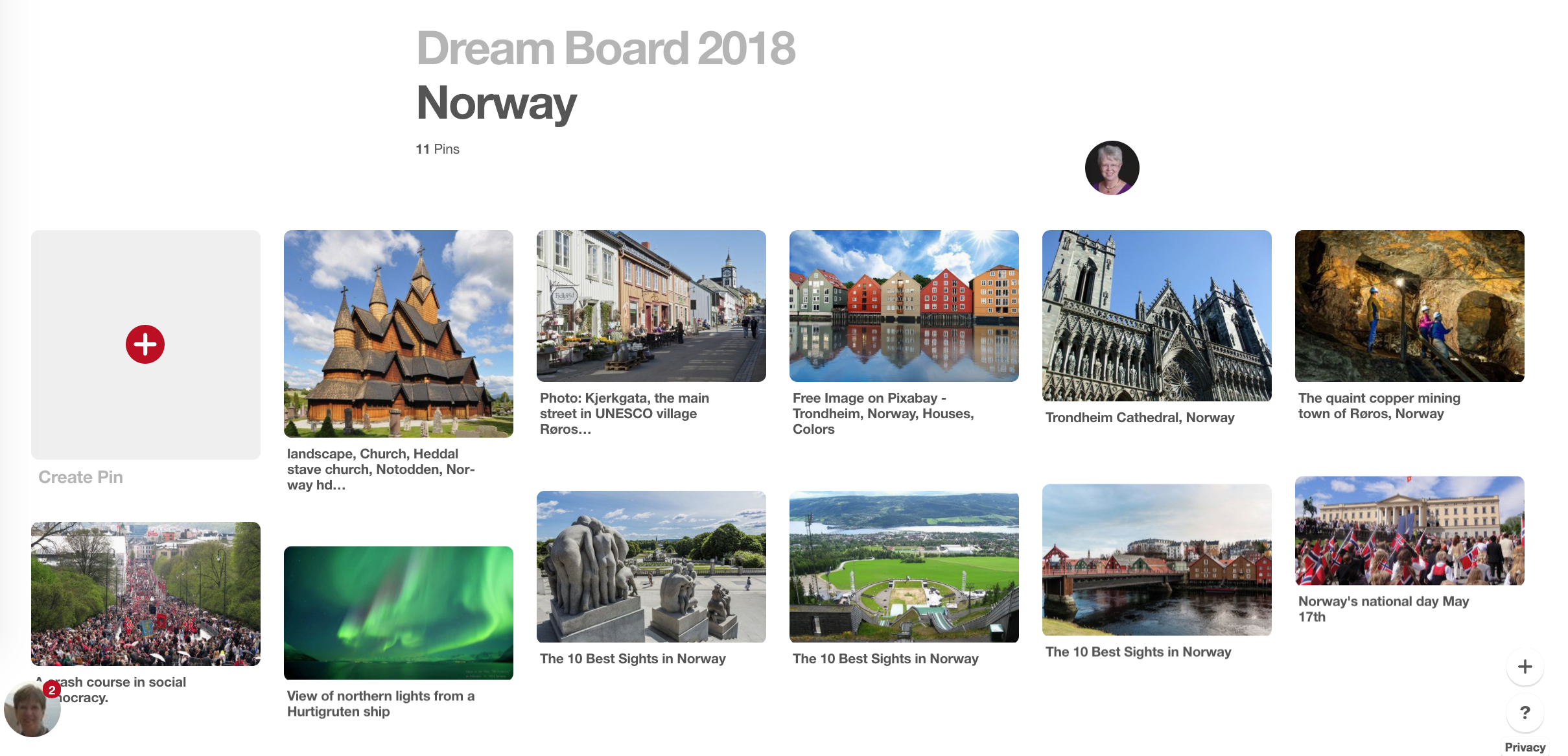 In order to keep focused on what we hope to see on our trip, I used Pinterest to create a Dream Board for 2018 with a section titled “Norway.”