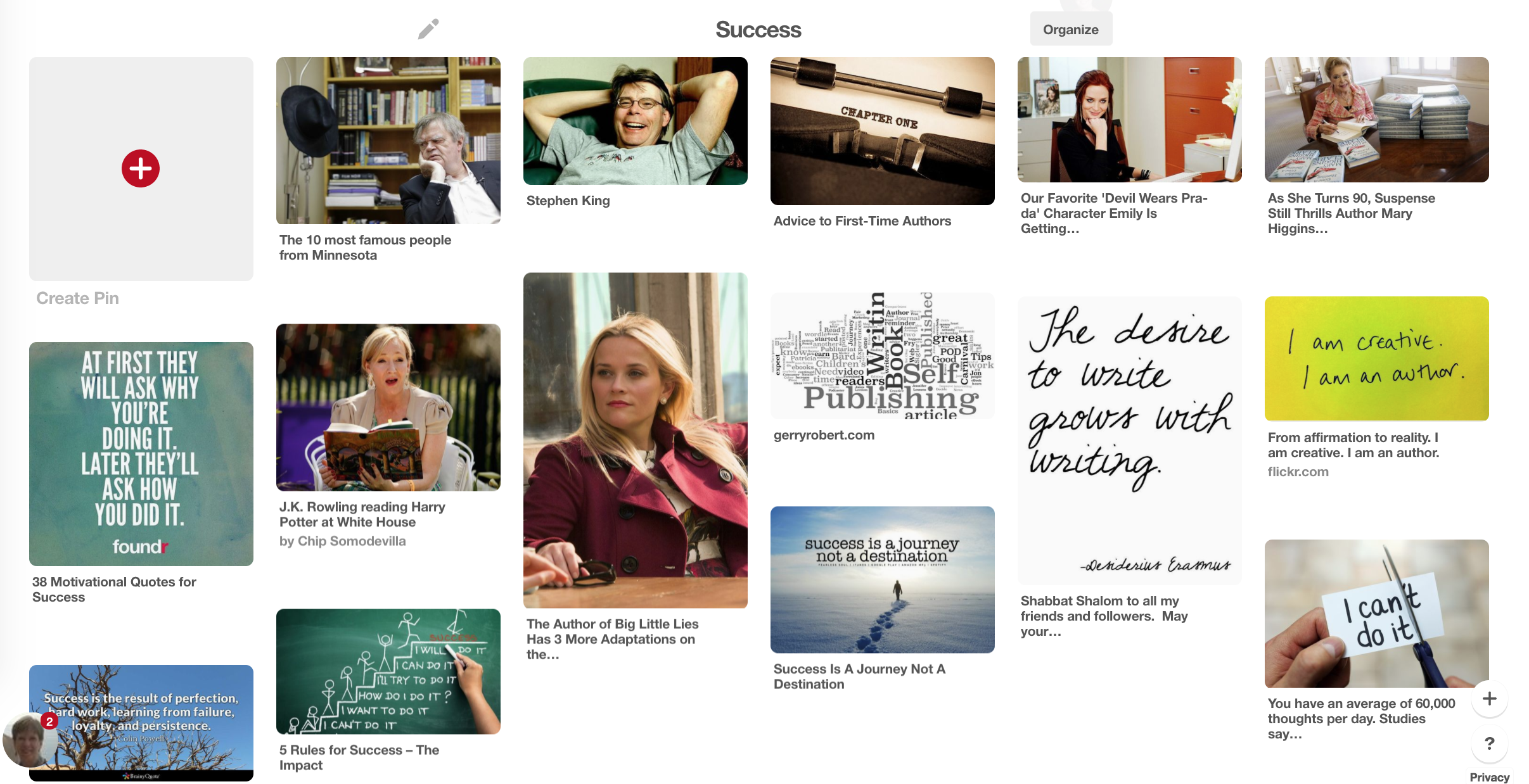 The second section of my Dream Board 2018, labeled “Success,” includes motivational quotes and images of authors I admire or whose success is worth emulating.