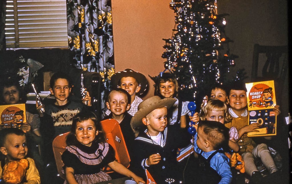 At Grandpa and Grandma’s house, we would each receive a present from the grandparents and one from whoever drew our names in the arrangement our parents worked out so that none of them had to buy presents for all the cousins. Only Grandpa and Grandma bought presents for all of us. Then, after eating a real meal and hearing the cousins whose families attended the small church located in the country recite their pieces, usually a verse from the Biblical story of the birth of Jesus, we bundled up and headed back home where we would open the rest of the presents. Some of them were labeled “from Santa,” but none of us asked how Santa could have delivered the presents before he made his midnight ride with reindeer.