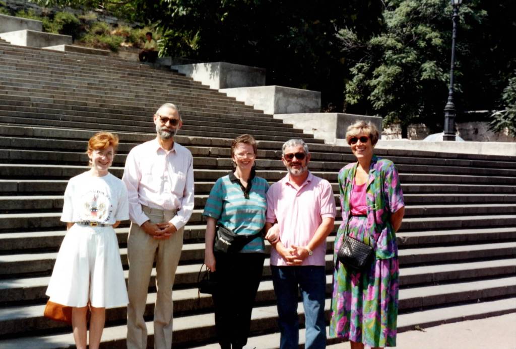 A photo of our party, minus Ambassador Pendleton, at the Potemkin Steps in Odessa, Ukraine, in 1994.