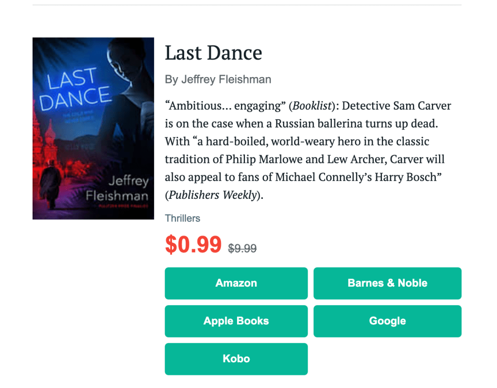 BookBub. The great thing about BookBub is that they will run free or low-cost ads for you for your new releases (if you have 1,000 followers). You can also run discount listings via CHIRP for audiobooks. For general ads, you can run cost-per-click ads that you don’t pay for unless people click on your ads — and people who click tend to buy. I run a lot of ads with low bids, which don’t generate a lot of clicks, or even impressions, but I’m not paying for them so they give me a chance to put my ads and covers in front of a lot of eyes even if they don’t buy. Cost-efficiency here is very good if you bid low. You can run a “Featured Deal,” which I hear is great, but it can run $1,500 depending on your parameters — I have not tried that yet.
