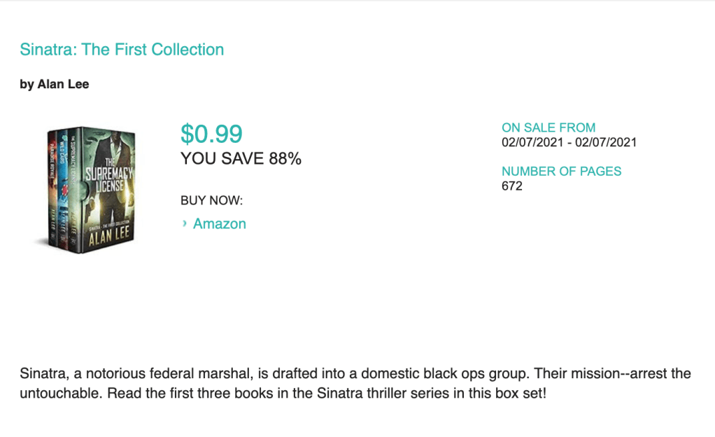 For a series, AXP offers a “Series Spotlight” option to put your whole series in front of potential readers for a reasonable cost. I recommend this in particular since you have significant creative flexibility to say what you want to say about your books. You decide what to discount and when to run the offer.